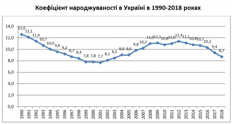 С момента обретения Украиной независимости рождаемость неуклонно снижалась. И в 2001 году достигла дна - 1,09 рождений на одну женщину (в советское время было в пределах двух). После чего начала постепенно расти снова.