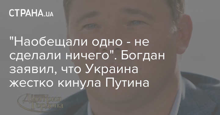 "Наобещали одно - не сделали ничего". Богдан заявил, что Украина жестко кинула Путина