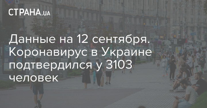 По состоянию на утро субботы, 12 сентября, в Украине подтвердились новые 3103 случаев заражения коронавирусом. Это всего на 41 человека меньше, чем вчера, когда был установлен антирекорд.