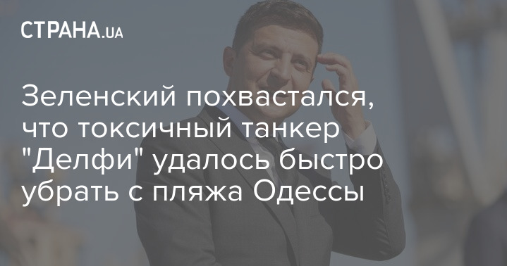 Зеленский похвастался, что токсичный танкер "Делфи" удалось быстро убрать с пляжа Одессы. Скриншот: Офис президента в Фейсбук