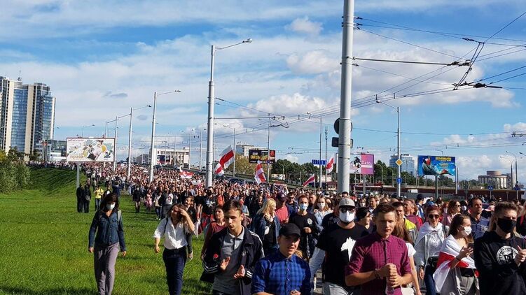 Более 150 тысяч человек вышли на оппозиционную акцию протеста в Минске. Демонстранты разделились на несколько колонн, одна из которых направляется к Дворцу Независимости, где расположена резиденция президента Беларуси Александра Лукашенко.