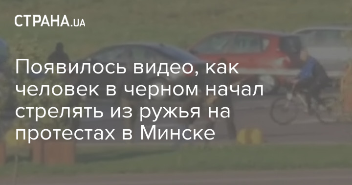 В сети появилось видео, на котором неизвестный в черной форме без опознавательных знаков совершает предупредительный выстрел в воздух из ружья рядом с толпой протестующих в Минске.