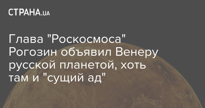 Глава "Роскосмоса" Дмитрий Рогозин назвал Венеру русской планетой и заявил, что Россия связывает с ней большие планы. По его словам, готовится отправление к Венере собственной экспедиции, кроме той, что собирается в сотрудничестве с США - миссии "Венера-Д", пишут российские СМИ.