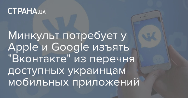 Министерство культуры и информационной политики Украины вместе с СНБО и СБУ принимают меры для блокировки соцсети "Вконтакте", которая на днях снова оказалась доступной для украинских пользователей. В частности,  министерство готовит обращение к основным провайдерам программного обеспечения (Apple, Google и др.) с требованием изъять мобильное приложение "ВКонтакте" из перечня доступных загрузок для украинских пользователей. Об этом сообщается на странице Минкульта в соцсети.