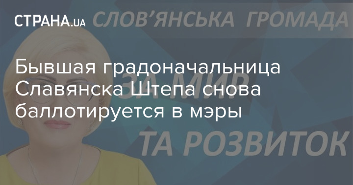 Неля Штепа, занимавшая пост мэра города Славянска Донецкой области с 2010 по 2014 годы, вновь выдвинула свою кандидатуру на эту должность. На местных выборах она будет избираться от "Партии мира и развития".