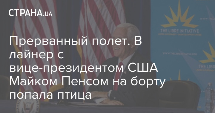 Вчера, 22 сентября, в США едва не произошла авиационная катастрофа, в которой мог погибнуть вице-президент США Майк Пенс. Когда лайнер с высокопоставленным деятелем администрации Трампа вылетел из аэропорта Манчестера (штат Нью-Гэмпшир - Ред.) в самолет врезалась огромная птица.