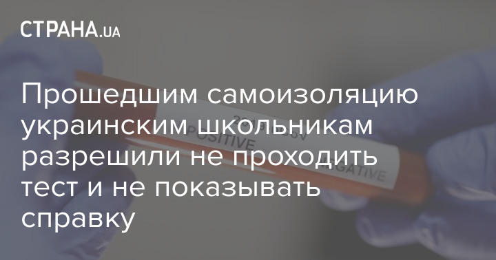 После самоизоляции из-за контакта с больным коронавирусом ученики не обязаны проходить тест и подавать в школу документы о состоянии здоровья. Об этом сообщается на сайте Министерства образования и науки Украины.