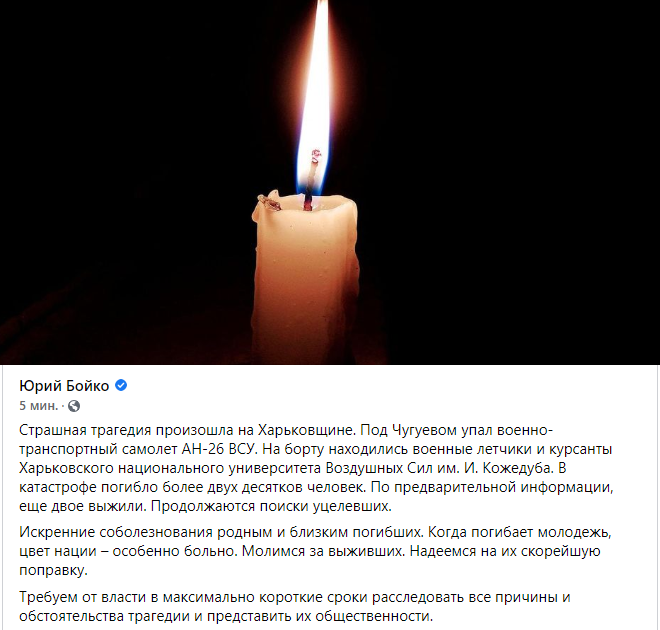 В соцсетях политики начали публиковать траурные свечки в память о разбившихся насмерть курсантах.