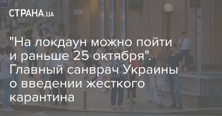 "По поводу национального локдауна. Я бы не привязывался ни к какой дате. На локдаун можно пойти и раньше 25 октября, и позже. Зависит только от роста количества случаев инфицирования коронавирусом", - заявил он, отметив, что, если граждане и бизнес будут придерживаться всех ограничений, то "никто не будет никого закрывать".