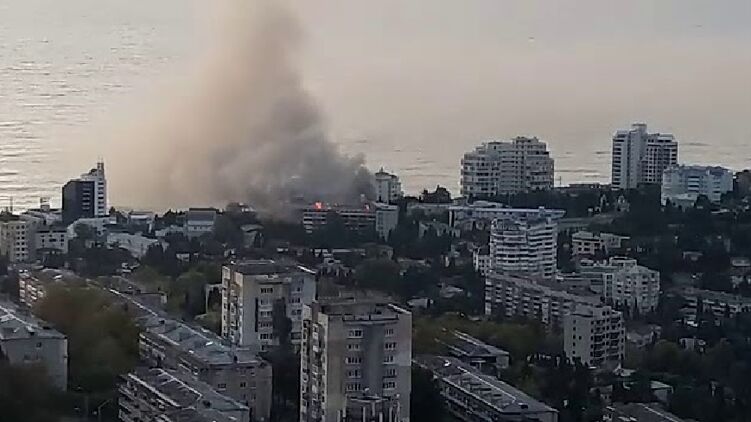 Серый дым до неба. В аннексированном Крыму загорелся санаторий Минобороны РФ "Ялта". Видео