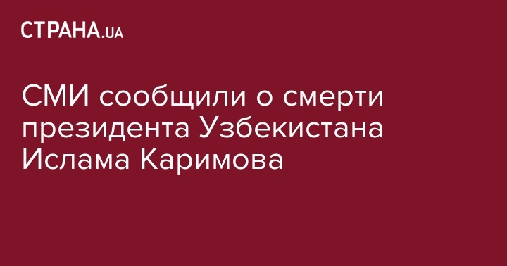 Информационное агентство "Фергана" сообщило о смерти президента Узбекистана Ислама Каримова со ссылкой на свои источники. По данным агентства, Каримов умер днем 29 августа.