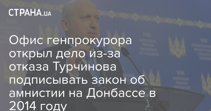 Офис генпрокурора возбудил уголовное дело в отношении бывшего председателя Верховной Рады Александра Турчинова на основании того, что тот не подписал в установленный срок принятый в сентябре 2014 года парламентом законопроект об амнистии участников боевых действий на Донбассе. При этом эта инициатива была одобрена депутатами во исполнение Минских соглашений.