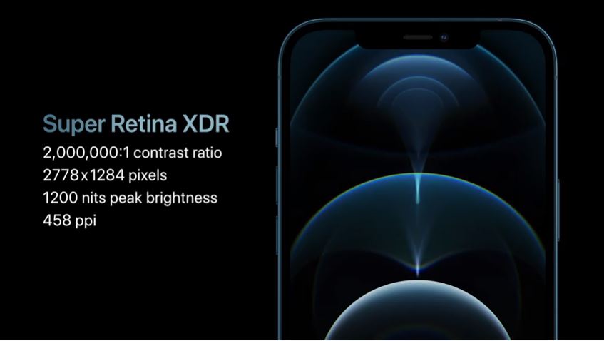 20:49 iPhone 12 Pro Max с диагональю 6,7 дюйма. Представлен в четырех цветах: графитовый, золотой, серебристый, синий.