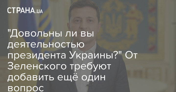 На сайте президента Украины в разделе петиций появилось предложение, которое касается опроса граждан во время местных выборов, инициированного Владимиром Зеленским. Автор петиции Валерий Геращенко требует к пяти вопросам от главы государства добавить еще один - нравится ли людям работа самого Зеленского, а также Верховной Рады.