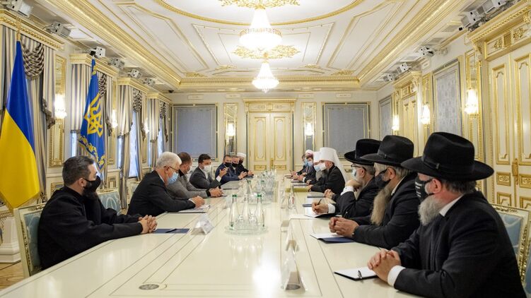 Президент Владимир Зеленский встретился с лидерами религиозных общих Украины и призвал их поспособствовать сокращению заболеваемости коронавирусом в стране.