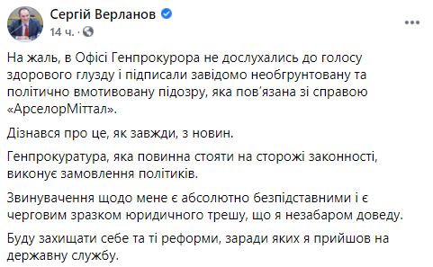 Сергей Верланов отреагировал на сообщение Офиса генпрокурора