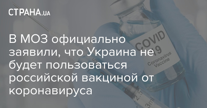 В Министерстве здравоохранения Украины отказались получать или закупать российскую вакцину от COVID-19.