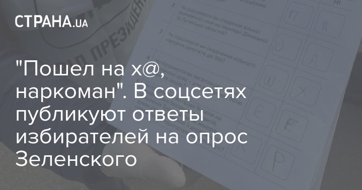 Некоторые украинцы, принявшие участие в опросе, своеобразно заполнили место ответа. "Пошел на х@, наркоман!", "Пошел на х@" – нецензурно отвечают респонденты.