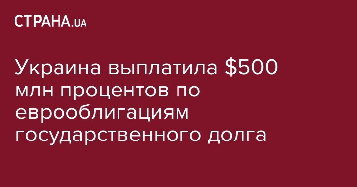 Министерство финансов Украины в четверг, 1 сентября выплатило проценты по евробондам в сумме $505,429 млн, в качестве платежей за второй купонный период, указано в официальном сообщении ведомства.