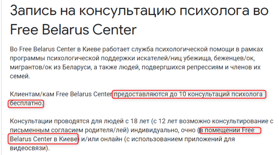 Размах благотворительности достаточно серьезный. Всем, кто пострадал от действий белорусских властей, гарантируется десять бесплатных психологических консультаций в Киеве, каждая из которых длится 50 минут.