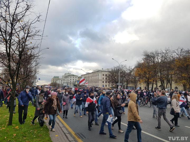 Также небольшое шествие прошло в центре города по проспекту Независимости.