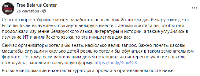 Также "Центр" продвигает идею онлайн-обучения детей белорусских эмигрантов - то есть не в украинских школах, а на удаленке, где им будут преподавать белорусский язык и историю. И выдавать аттестаты белорусского образца (напомним, что в Украине благодаря тотальной украинизации образования почти исчезли школы с преподаванием на языках нацменьшинств).