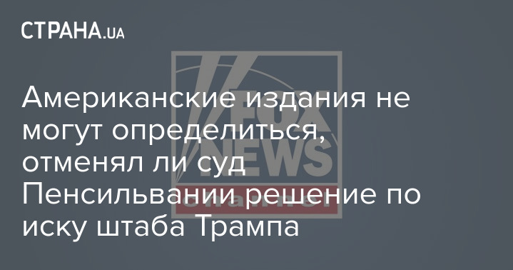 В американских изданиях возникла путаница по поводу верховного суда штата Пенсильвания. Одни написали со ссылкой на вердикт суда, что этот орган отменил решение нижестоящей инстанции по процедуре подсчета голосов на выборах президента в регионе. Другие утверждают, что суд опроверг эту новость.