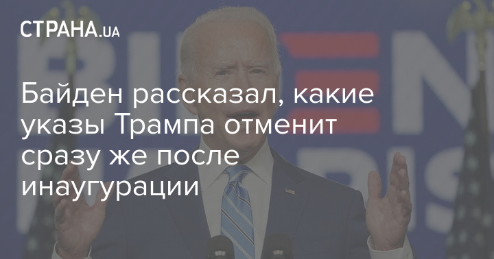 Кандидат в президенты США от демократов Джо Байден, объявивший о победе на выборах, намерен сразу после инаугурации отменить ряд указов пока еще действующего главы Белого дома Дональда Трампа.