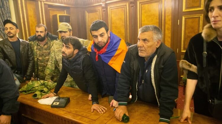 Несколько тысяч человек сейчас находится в различных районах Еревана, в том числе в зданиях правительства и парламента Армении. Протесты в Ереване начались после подписания Пашиняном мирного соглашения с Россией и Азербайджаном.