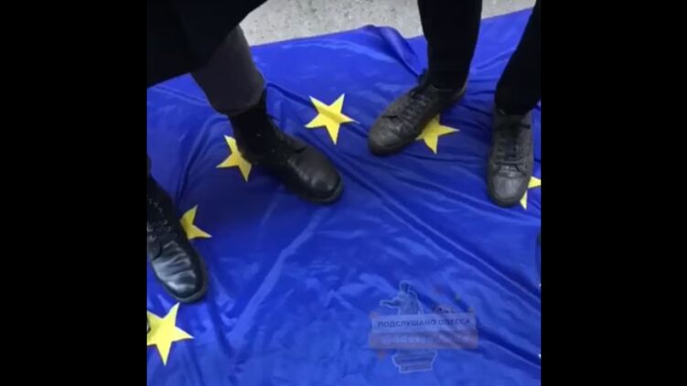 В Одессе открыто уголовное дело по факту надругательства над флагом Европейского Союза. Правоохранители начали расследование после обнаружения в соцсети видео, на котором были запечатлены топчущие ногами флаг молодые люди. Об этом сообщается на сайте Национальной полиции в Одесской области.