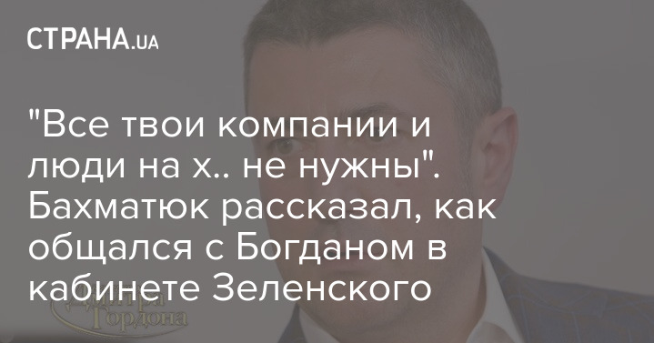 "Все твои компании и люди на х.. не нужны". Бахматюк рассказал, как общался с Богданом в кабинете Зеленского