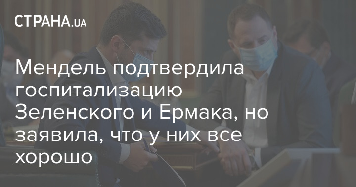 Пресс-секретарь президента Украины Юлия Мендель подтвердила, что Владимир Зеленский и глава его Офиса Андрей Ермак находятся в больнице Феофания.