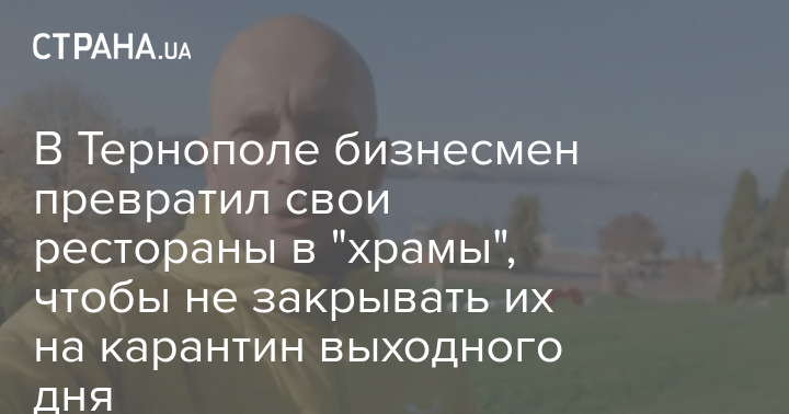 В Тернополе бизнесмен превратил свои рестораны в "храмы", чтобы не закрывать их на карантин выходного дня
