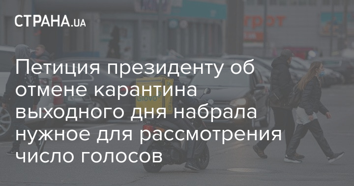 Опубликованное на сайте петиций президенту 10 ноября прошение об отмене карантина выходного дня набрало необходимое для рассмотрения количество голосов. По состоянию на 19:50 13 ноября документ поддержал уже 25 141 человек.