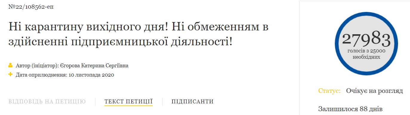 14:31  Петиция президенту об отмене карантина набрала необходимые 25 тысяч голосов.