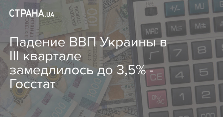 Спад валового внутреннего продукта Украины по итогам третьего квартала 2020 года составил 3,5% по отношению к аналогичному периоду 2019 года. Во втором квартале падение было равно 11,4%, а в первом - 1,3%.