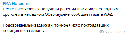 Как сообщает полиция Оберхаузена, правоохранители исключили террористический мотив в данной атаке с холодным оружием.