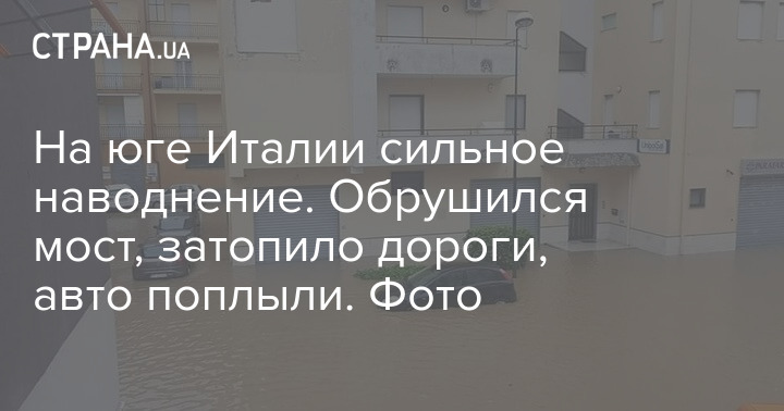 В Италии, в южных провинциях Кротоне и Палермо из-за проливных дождей произошли масштабные наводнения. В результате обрушился мост и затоплены дороги.