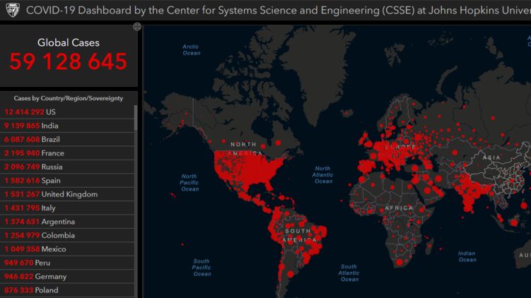 На 24 ноября число зараженных на Земле перевалило за 59 миллионов человек, фото: arcgis.com