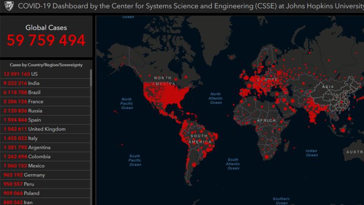 По данным на утро 25 ноября число зараженных на планете приближается к 60 миллионам, фото: arcgis.com