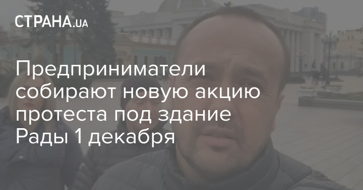 Украинские предприниматели собирают акцию протеста под зданием Верховной Рады во вторник, 1 декабря. Об этом в соцсети написал глава общественного движения "Предприниматели Украины" Сергей Доротич.