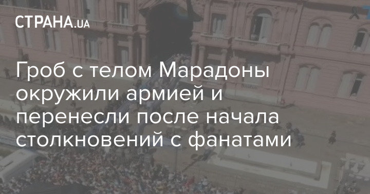 Ранее из-за беспорядков в центре Буэнос-Айреса власти приняли решение убрать из зала президентского дворца выставленный там для прощания гроб с телом Марадоны.