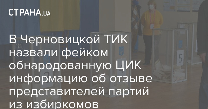 Партии "Батькивщина", "Родной город" и Черновицкая городская территориальная избирательная комиссия (ТИК) опровергли сообщение о том, что политсилы отозвали своих представителей из участковых избиркомов, чтобы сорвать выборы.