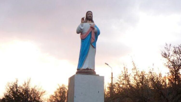 В селе Осипенко Запорожской области вместо памятника Владимиру Ленину поставили скульптуру Иисуса Христа.