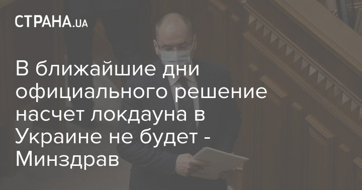 Министр здравоохранения Максим Степанов заявил, что вопрос локдауна в Украине не выносят на заседание Кабинета министров 2 декабря. Соответственно, в ближайшие дни официального решения еще не будет.