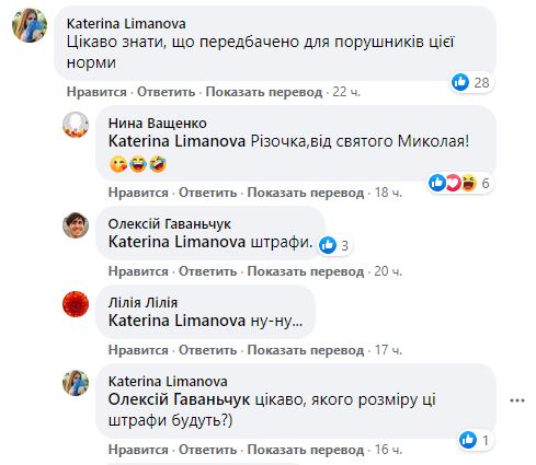 В комментариях под постом Креминя пользователи интересуются, что предусмотрено для нарушителей этой нормы. И какие будут штрафы.