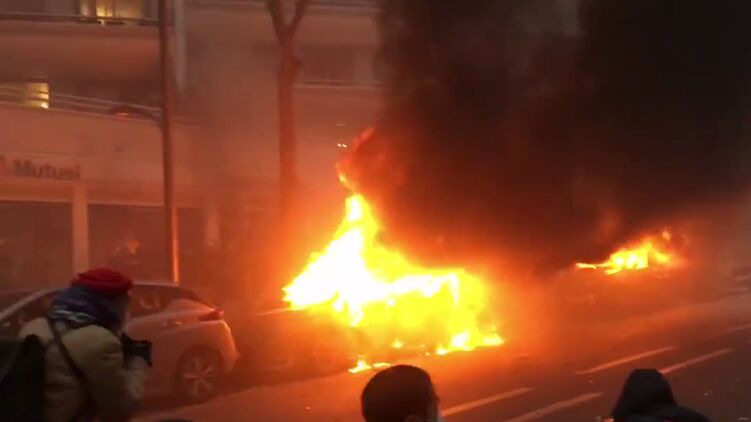 В Париже массовые беспорядки. Демонстранты поджигают машины. Видео
