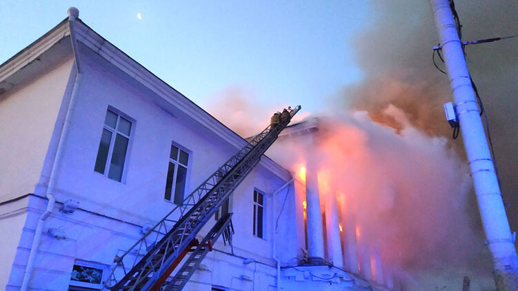 Пожар возник в Доме дворянского собрания в Полтаве. Фото: ГСЧС