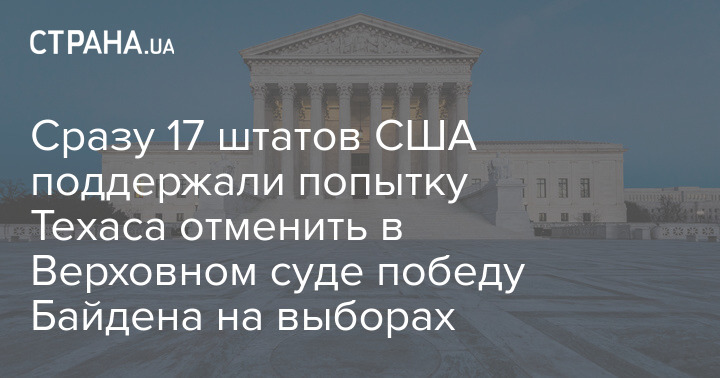 Семнадцать штатов присоединились к обращению генерального прокурора Техаса в Верховный суд США с требованием отменить итоги выборов в четырех штатах.