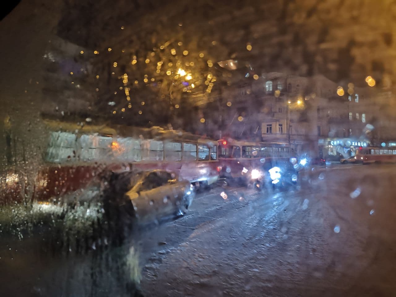 Транспорт в Киеве начал постепенно выходить из строя. Первыми "сдались" трамваи возле Национального цирка Украины.